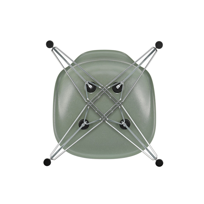 Reissued by Vitra, the Eames Fiberglass Chair makes its grand return in its original colours. Designed by Charles and Ray Eames, the Eames Plastic Chair is one of the most important and best-known furniture creations of the 20th century. Indeed, its vivid appearance makes it highly prized and a classic of design furniture. The DSR Fiberglass chair is the result of a new manufacturing process by Vitra that allows the seat shell to be manufactured in its original colours and in its first material produced. The Eames Chair, edited by Vitra, has been constantly improved and adapted over its long production history. Introduced to the market in 1950, the Eames fiberglass DSR chair by Vitra, was the first plastic chair to go into mass production. The Eames Fiberglass DSR chair also marked the introduction of the multifunctional chair whose shell can be combined with a variety of bases - a then-revolutionary idea that has since spread widely. The shells of the Eames Fiberglass Vitra Chair stand out for the characteristic irregular surface of the fibreglass, which appears almost like a natural material thanks to its clearly visible fibres. Its hulls rest on the superb Eiffel chrome-plated lattice structure. A rubber fastener is fitted under the seat for optimum comfort. The Fiberglass Chairs DSR Vitra form a vast family that offers countless variants suitable for almost any use.