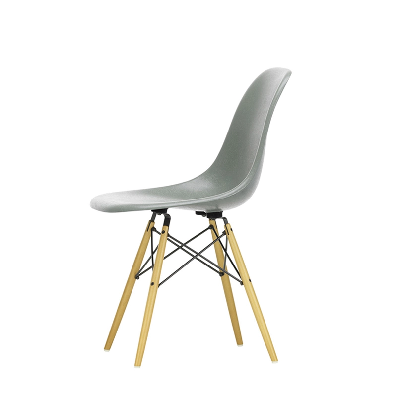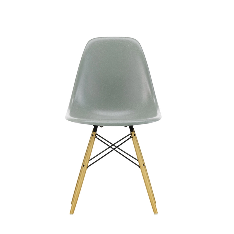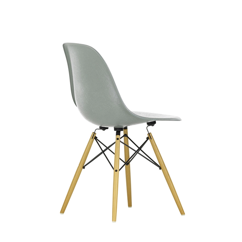 Reissued by Vitra, the Fiberglass Chair makes its grand return in its original colours. Designed by Charles and Ray Eames, the Eames Plastic Chair is one of the most important and best-known furniture creations of the 20th century. Indeed, its vivid appearance makes it highly prized and a classic of design furniture. The Fiberglass Chair is the result of a new manufacturing process by Vitra that allows the seat shell to be manufactured in its original colours and in its first material produced. The Eames Chair has been constantly improved and adapted over its long production history. Launched on the market in 1950, it was the first plastic chair to be mass-produced. It also marked the introduction of the multi-functional chair, whose shell can be combined with a variety of legs – a revolutionary idea at the time that has since become widespread. The shells of the Fiberglass Chair stand out for the characteristic irregular surface of the fibreglass, which appears almost like a natural material thanks to its clearly visible fibres. Its hulls rest on the superb Eiffel chrome-plated lattice structure. A rubber fastener is fitted under the seat for optimum comfort. The Fiberglass Chairs Vitra form a vast family that offers countless variations suitable for almost any use.