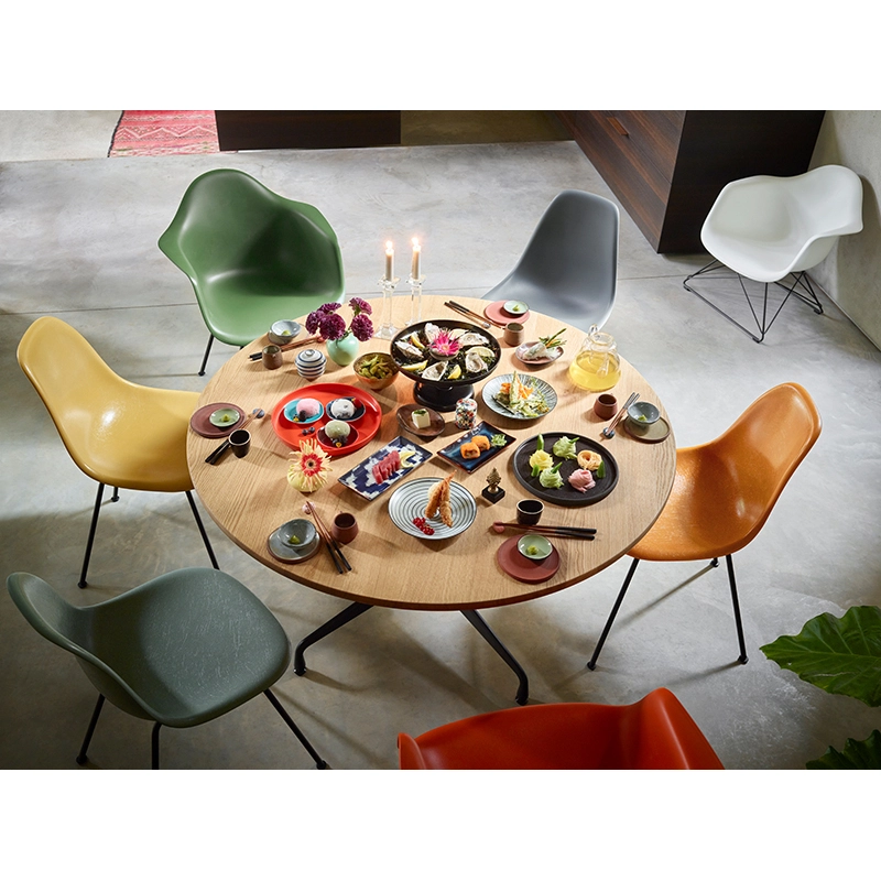 The Plastic Armchairs designed by Charles and Ray Eames in the 1950s were presented for the first time as part of the 'Low Cost Furniture Design' competition organised by the Museum of Modern Art in New York. The shell with its organic lines was originally made of fibreglass. Reissued by Vitra with a polypropylene shell, the Eames Plastic LAR (Lounge Height Armchair Rod Base) has a low steel wire base, which gives the chair good stability and great lightness. Thanks to its compact dimensions and the wide range of colours available for the shell, the Plastic Chair LAR can be integrated into a variety of styles and types of furnishings. Thanks to the organic shape of this classic armchair, LAR is a striking solo piece of furniture but can also be combined with many types of sofa to form an attractive contrast.