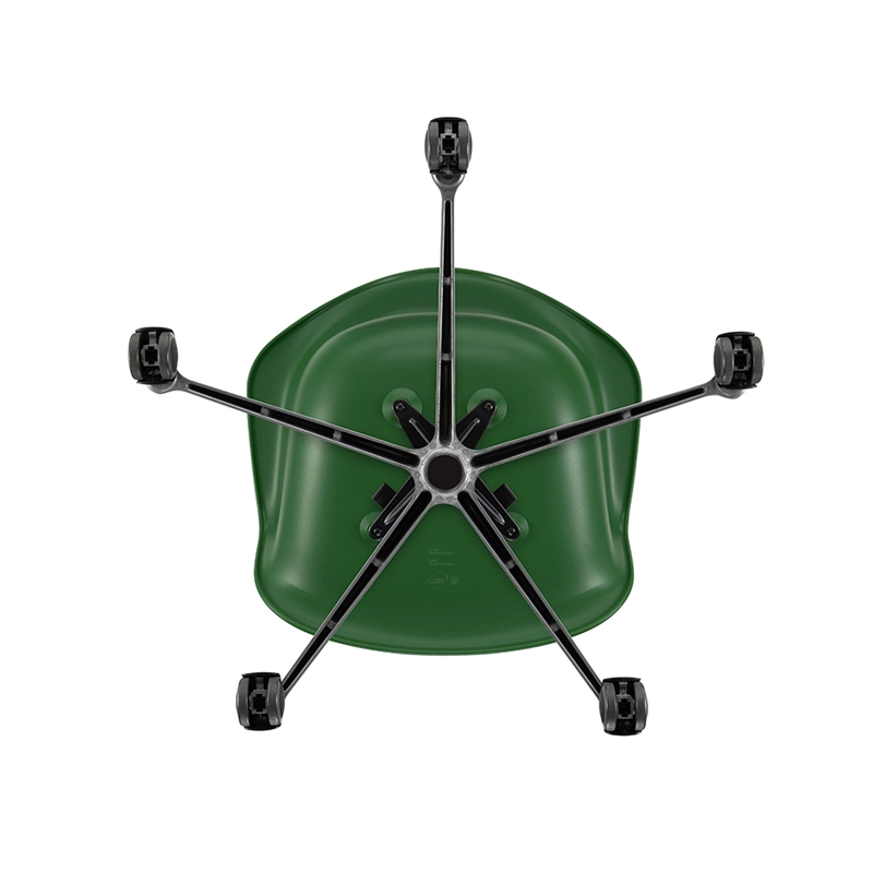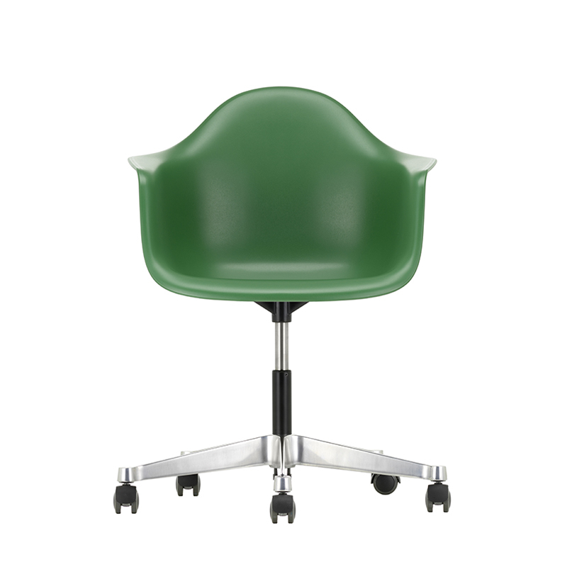 The Eames Plastic Side Chair is the updated version of the legendary Fiberglass Chair by Charles and Ray Eames. Designed in collaboration with Zenith Plastics for the 'Low Cost Furniture Design' competition at the Museum of Modern Art in New York in 1950, it was the first industrially manufactured plastic chair. Published by Vitra, the Eames Plastic PACC (Pivot Armchair Cast base on Castors) armchair has a castor base. The organically designed shell, which ensures excellent comfort, combines with the swivel base to transform the chair into an office chair.