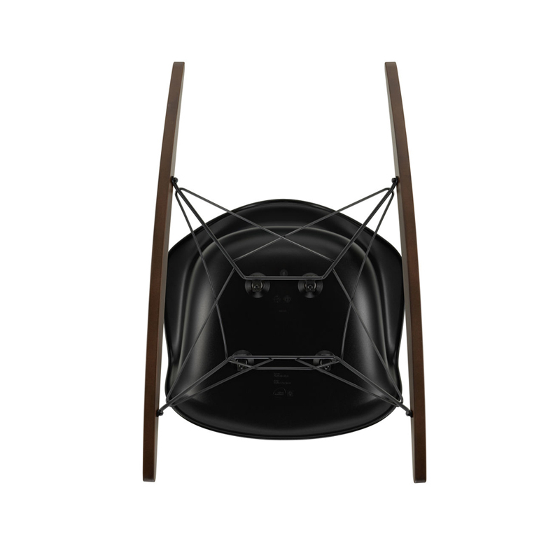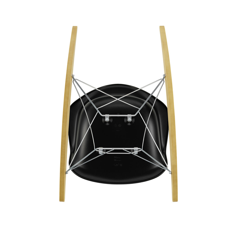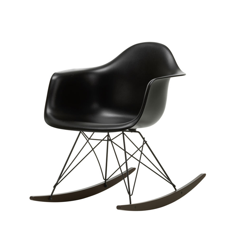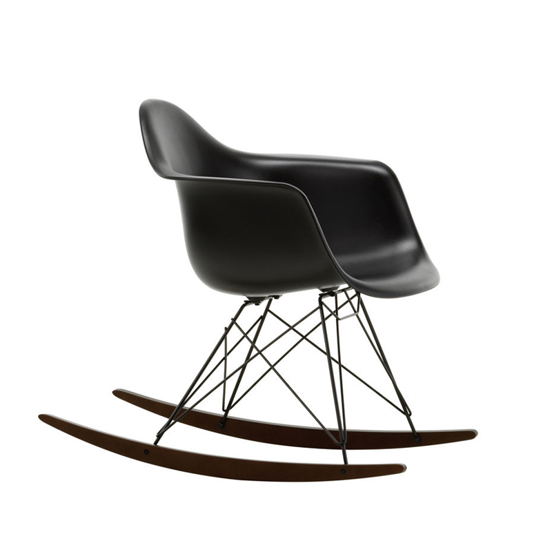 Plastic Armchairs were first presented by Charles and Ray Eames in the "Low Cost Furniture Design" competition organised by the Museum of Modern Art in New York. These small rocking chairs were first produced in 1950. The organically designed shell made of highly comfortable synthetic material was later combined with a range of legs. The shell on this RAR rocking chair model is paired with four legs in steel wire cross-pieces fixed onto two wooden runners. The current RAR Eames Plastic Armchairs (Rocking Armchair Rod base) made of polypropylene offer even greater comfort. Published by Vitra, these cosy, comfortable armchairs are available in a range of colours and will look great in any room in your home.