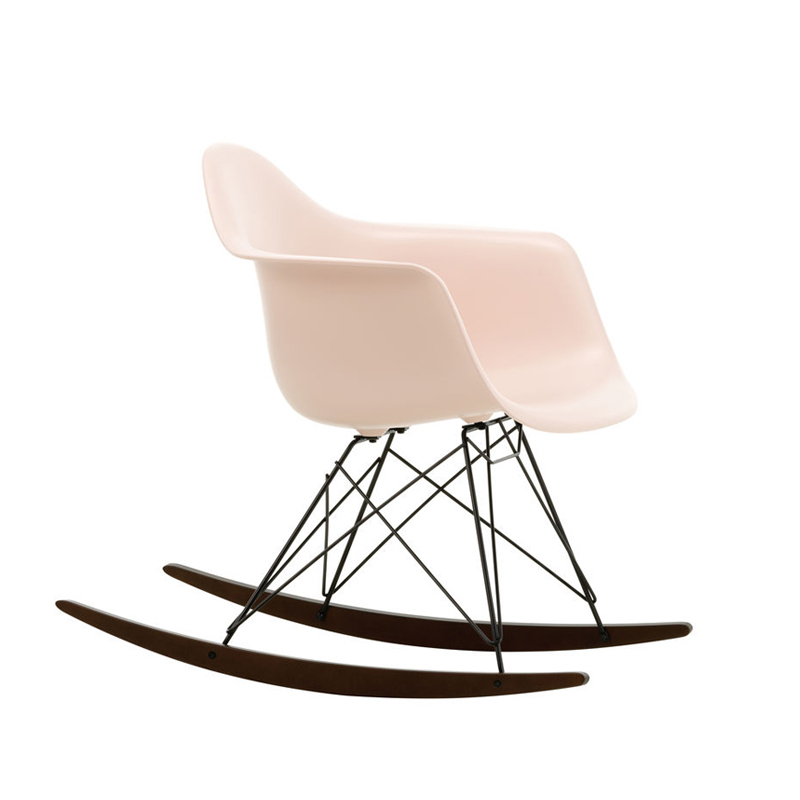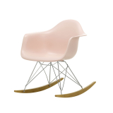 Plastic Armchairs were first presented by Charles and Ray Eames in the "Low Cost Furniture Design" competition organised by the Museum of Modern Art in New York. These small rocking chairs were first produced in 1950. The organically designed shell made of highly comfortable synthetic material was later combined with a range of legs. The shell on this RAR rocking chair model is paired with four legs in steel wire cross-pieces fixed onto two wooden runners. The current RAR Eames Plastic Armchairs (Rocking Armchair Rod base) made of polypropylene offer even greater comfort. Published by Vitra, these cosy, comfortable armchairs are available in a range of colours and will look great in any room in your home.