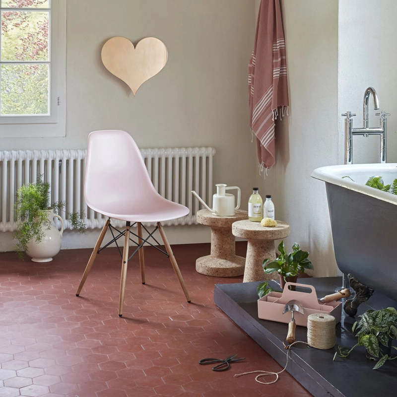 The Eames Plastic Side Chair is the updated version of the legendary Fiberglass Chair by Charles and Ray Eames. Designed in collaboration with Zenith Plastics for the 'Low Cost Furniture Design' competition at the Museum of Modern Art in New York in 1950, it was the first industrially manufactured plastic chair. The Eames Plastic Chair DSW (Dining Side chair Wooden base) has a four-legged base in stained and lacquered maple with tubular steel cross braces. The combination of plastic and wood gives this classic design a warm look and relaxed charm. With moulded polypropylene and the new version of fibreglass models, Vitra has improved robustness, elasticity and comfort. Its polypropylene shell in a range of colours can be combined with three different colours of base to match its environment, whether indoors or out. What's more, its seat shell can be fitted with a seat cushion or full upholstery in a wide choice of fabric colours. The Eames Plastic Chair DSW offers a new finish and improved comfort. The organic lines of its shell, which follow the curves of the body perfectly, ensure excellent comfort, making it ideal for use around a table or to accompany a small home office.