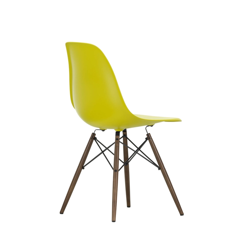 The Eames Plastic Side Chair is the updated version of the legendary Fiberglass Chair by Charles and Ray Eames. Designed in collaboration with Zenith Plastics for the 'Low Cost Furniture Design' competition at the Museum of Modern Art in New York in 1950, it was the first industrially manufactured plastic chair. The Eames Plastic Chair DSW (Dining Side chair Wooden base) has a four-legged base in stained and lacquered maple with tubular steel cross braces. The combination of plastic and wood gives this classic design a warm look and relaxed charm. With moulded polypropylene and the new version of fibreglass models, Vitra has improved robustness, elasticity and comfort. Its polypropylene shell in a range of colours can be combined with three different colours of base to match its environment, whether indoors or out. What's more, its seat shell can be fitted with a seat cushion or full upholstery in a wide choice of fabric colours. The Eames Plastic Chair DSW offers a new finish and improved comfort. The organic lines of its shell, which follow the curves of the body perfectly, ensure excellent comfort, making it ideal for use around a table or to accompany a small home office.