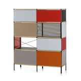 In 1949, Charles and Ray Eames created a new multifunctional shelving system that was based strictly on the principles of mass production: the Eames Storage Units, which were based on the construction and design of their house. Produced by Vitra, the Eames Storage Unit Bookcase has a black epoxy-finish metal structure that contrasts with the veneered birch. A bookcase that is as emblematic as it is functional, it is equipped with thermoformed sliding doors and three drawers. The feet are height adjustable. This original piece of storage furniture combines eye-catching design and excellent functionality.