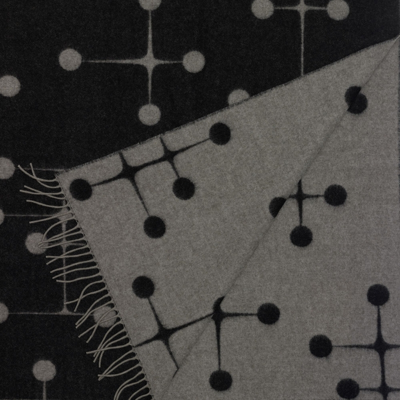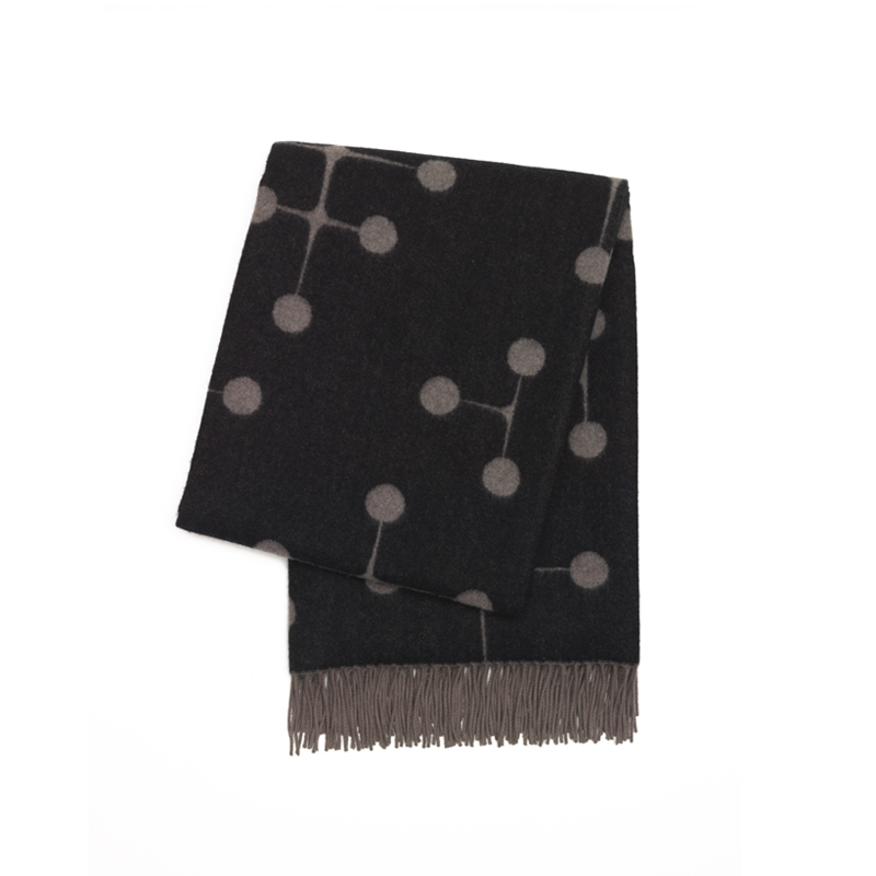 Produced by Vitra, this very graphic blanket uses the "Dot Pattern" motif, created by Charles & Ray Eames in 1947, during an exhibition at the Museum of Modern Art in New York. Always modern, this pattern has been adapted to create blankets using the jacquard weaving technique, where the colours are reversed on the underside and top. They are made of merino lambswool and manufactured by a German factory, whose craftsmanship ensures high quality pieces. Available in four shades, these fabrics bring warmth and softness to any interior.