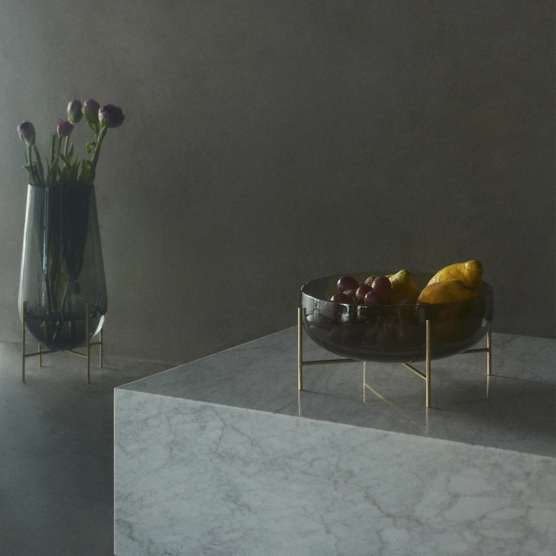 Designed by Theresa Rand, the Echasse series combines the classic elegance of a traditional glass bowl with a light, playful expression. The slim, slender feet gently suspend the glass shapes, creating a feeling of weighlessness while providing stability. Edited by Menu, the Echasse Bowl is a modern yet elegant, simple yet sculptural home accessory.