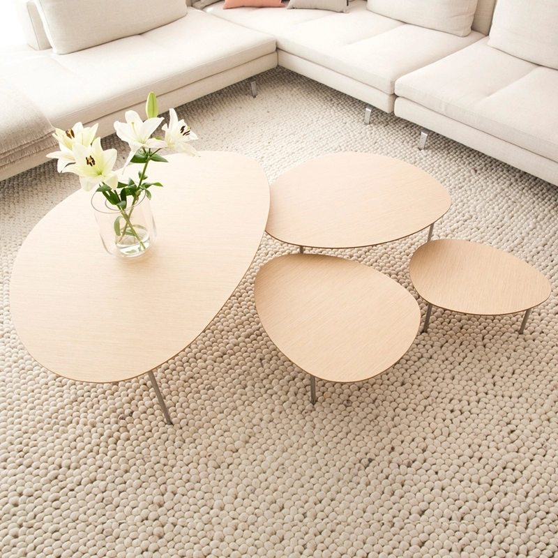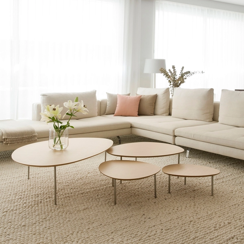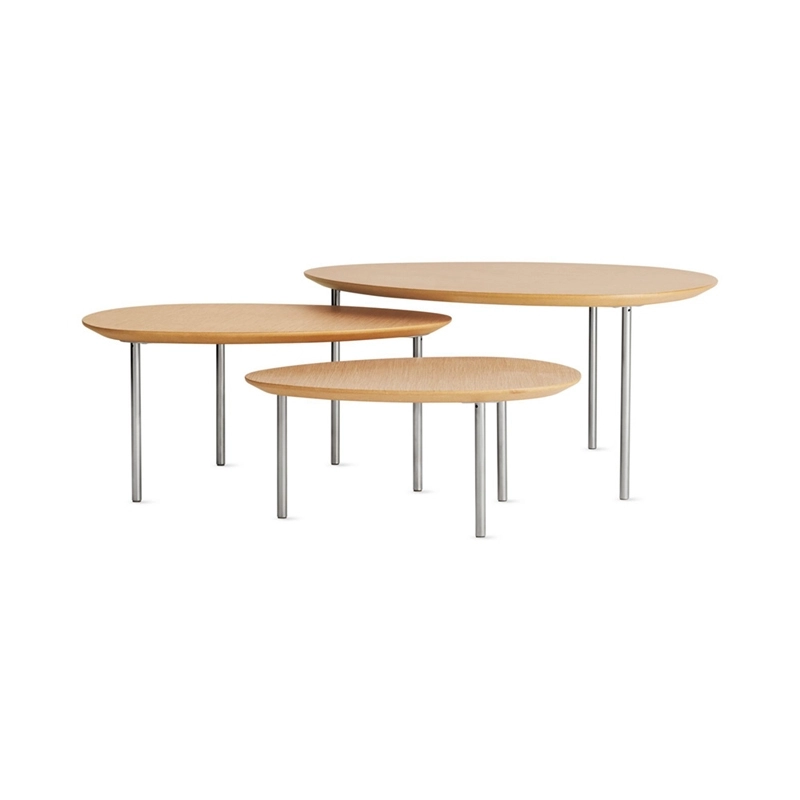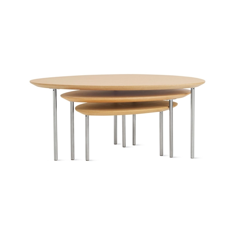 design coffee tables in different shapes, sizes and heights. A contemporary and poetic interpretation of the traditional nesting tables, Eclipse tables can be arranged under each other causing them to disappear, partially or totally, just like an eclipse. The shapes of the tables complement each other and can be freely combined according to taste or mood. The table tops come in natural walnut, wenge, oak or white lacquer, and the legs are made of chrome-plated tubular steel. Sold individually, Jon Gasca's Eclipse table series was inspired by organic shapes found in nature. Produced by Stua, the collection features four coffee tables in various shapes, sizes and heights. A contemporary and poetic interpretation of the traditional nesting tables, Eclipse tables can be arranged under each other causing them to disappear, partially or totally, just like an eclipse. The shapes of the tables complement each other and can be freely combined according to taste or mood. The table tops come in natural walnut, wenge, oak or white lacquer, and the legs are made of chrome-plated tubular steel. Sold individually