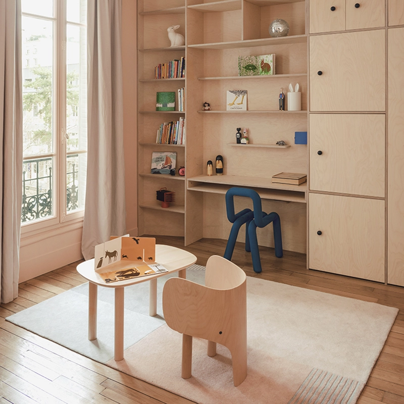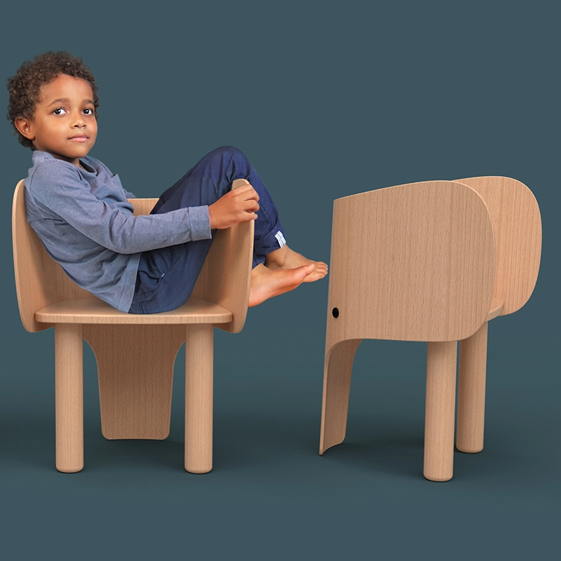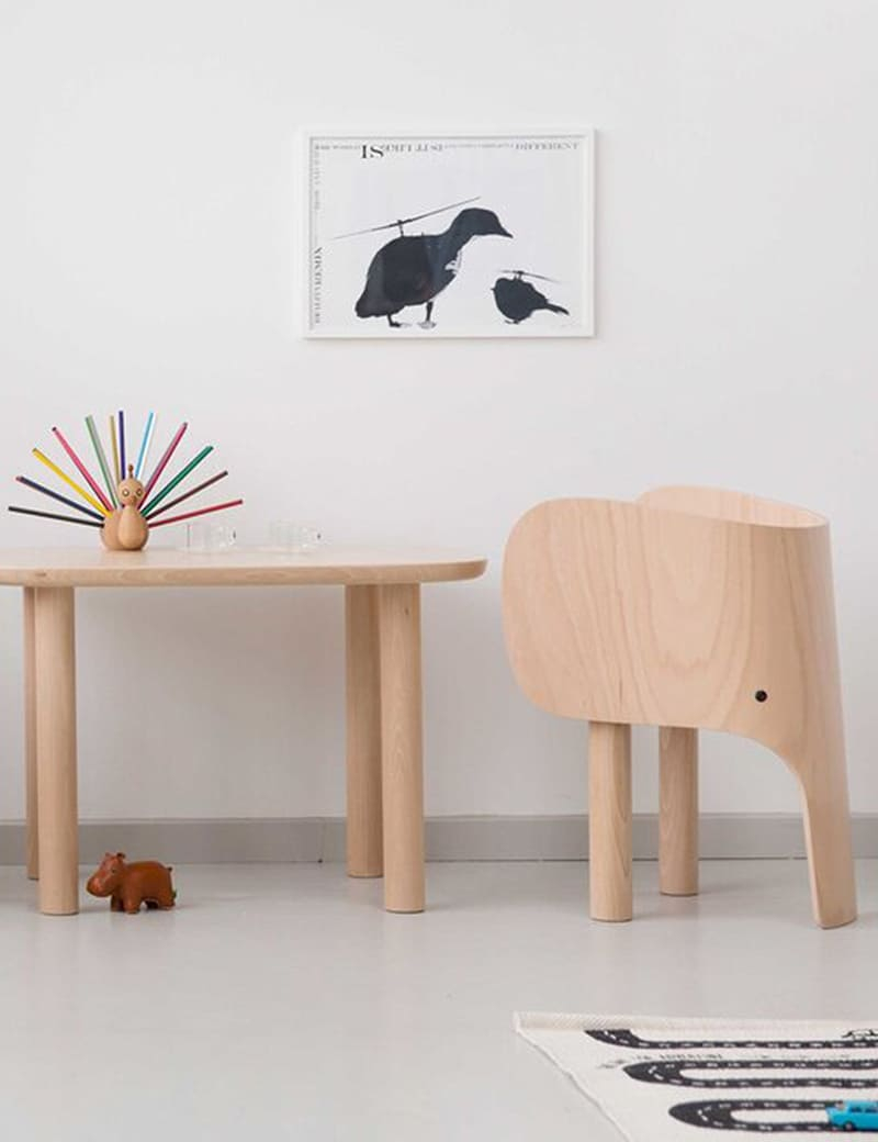 Designed by Marc Venot, the Elephant collection is composed of a chair and a table which, together, represent the giant of animals. These pieces of furniture, designed especially for children, appeal to the very young and stimulate the imagination.The Elephant chair and table are made of European beech wood and have a soft and pure shape that will also appeal to parents to furnish their children's room. Designed for children aged 3 to 11 Chair sold separately
