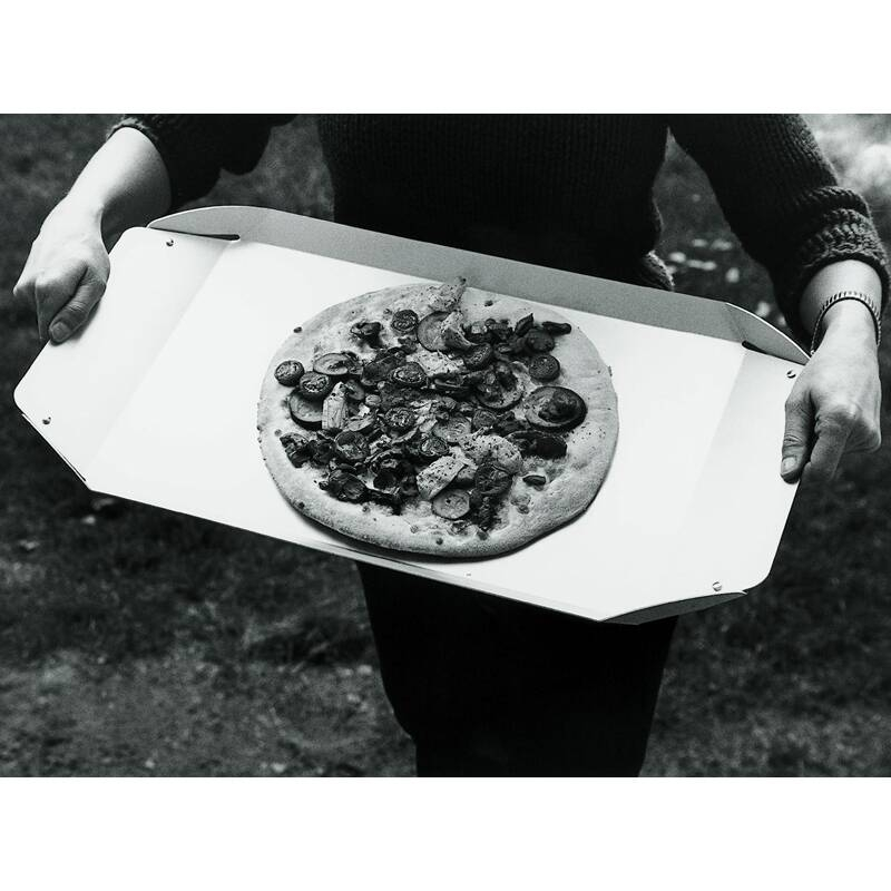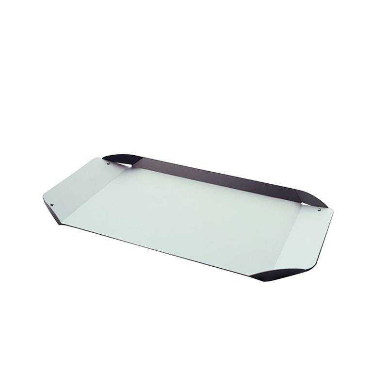 The Elisabetta serving tray is the result of research carried out in 2001 by Italian designer Enzo Mari for Danese Milano. An ingenious designer, he was committed to simplifying production techniques by transforming semi-finished products into finished products, using basic manufacturing methods. The Elisabetta tray is made from a piece of cut and bent aluminium sheet, ensuring resistance and stability. This sleek kitchen utensil is a decorative and functional object.