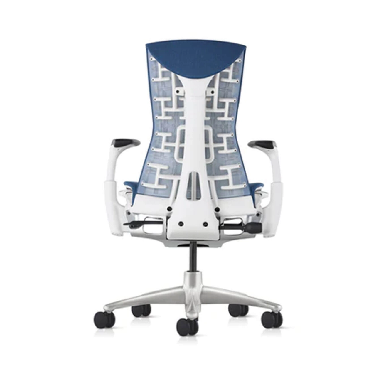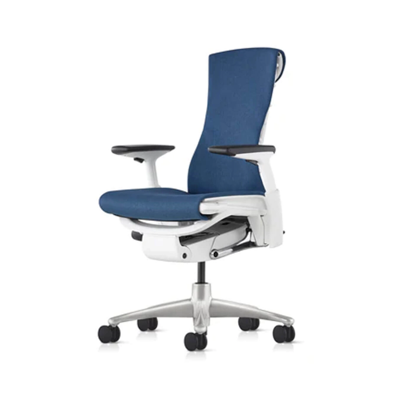 The Embody office chair, designed by Bill Stumpf and Jeff Weber and produced by Herman Miller, is a revolution in ergonomics and workplace well-being. The result of a collaboration with more than 30 experts in biomechanics, physical therapy, and ergonomics, Embody addresses the needs of professionals who spend long hours seated by offering optimal support for both physical and mental health. With its ability to automatically adapt to the body's movements, Embody distributes weight evenly, reducing pressure and encouraging natural motion. Its recline function supports a relaxed, reclined posture, creating harmony between the user and their technology. The Embody chair incorporates advanced technologies such as the PostureFit system and Backfit™ adjustment, ensuring a neutral, balanced posture and continuous support. As such, Embody is a top choice for those seeking both comfort and performance while maintaining their health during intensive work sessions. Designed and manufactured by Herman Miller, this office chair combines innovation and quality to transform the seated work experience. Its narrow backrest encourages proper posture while allowing freedom of movement. The ventilated seat is composed of four support layers. Pneumatic seat height adjustment and adjustable armrests. PVC-free and made from 42% recycled materials.