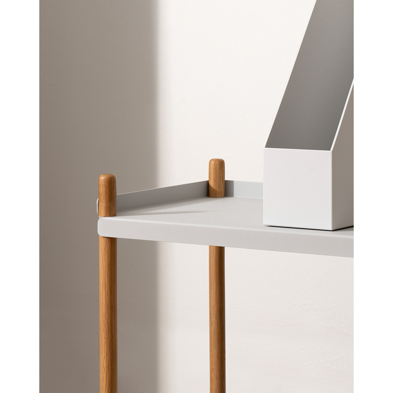 Bolt is a shelving collection with a simple, functional aesthetic, designed by Lennart Ebert. Each Shelf Bolt is formed from two simple elements: bent steel shelves and solid oak uprights. The shelves wrap around the wooden structure to give the whole unit strength and stability. Screws and threads integrated into the structure make assembly simple and tool-free. Edited by Nine, the Bolt Shelf is available in two lengths, two heights and three colour combinations, to suit your storage needs and your space.