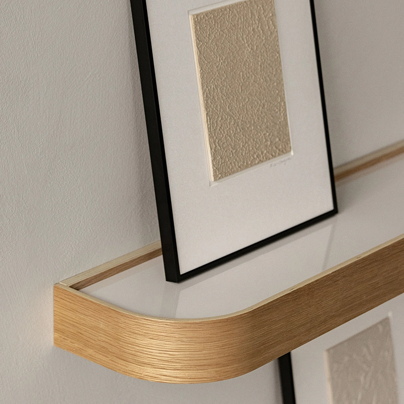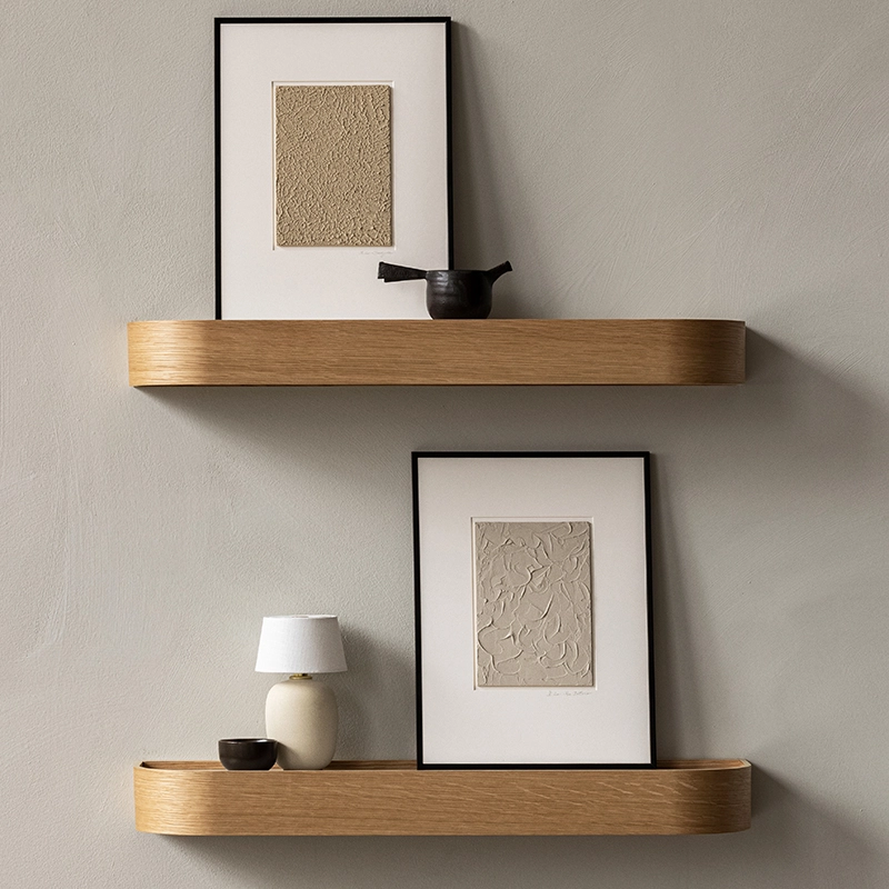 Designed by Nina Bruun for Audo Copenhagen, Epoch is a shelf that is as elegant as it is practical, available in natural or dark-stained oak. Versatile and space-saving, it has a deep shelf on one side for everyday clutter and a shelf on the other for decorative items. The Epoch shelf can be fixed to the wall on its own or as a composition of several elements for a personal and original ensemble.