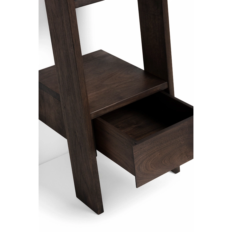 The Ladder ladder bookcase from De La Esapada offers generous storage space with a relatively small footprint. Steps of varying depths meet the wall when placed at an angle. This room is highly functional and suitable for a variety of environments.