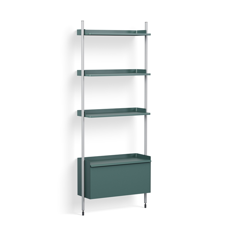 Designed by the famous designers Ronan & Erwan Bouroullec, Pier System is a multifunctional storage system, developed to adapt to modern living conditions. Supplied flat-packed and easy to assemble, reconfigure and recycle, Pier System features a simple, flexible construction that allows many types of objects to be stored and organised. Made from aluminium and steel using the minimum number of components necessary for a complete storage system, Pier System is available in a variety of colours and configurations, which can be combined together. The elements of the configurations can be moved according to need or desire, to integrate the functions you want. Published by Hay, the Pier storage system finds its place in every room of the house, be it the living room, bedroom, hallway or study. It is also suitable for contract spaces. The 131 configuration features a storage unit with drop-down door and three shelves.