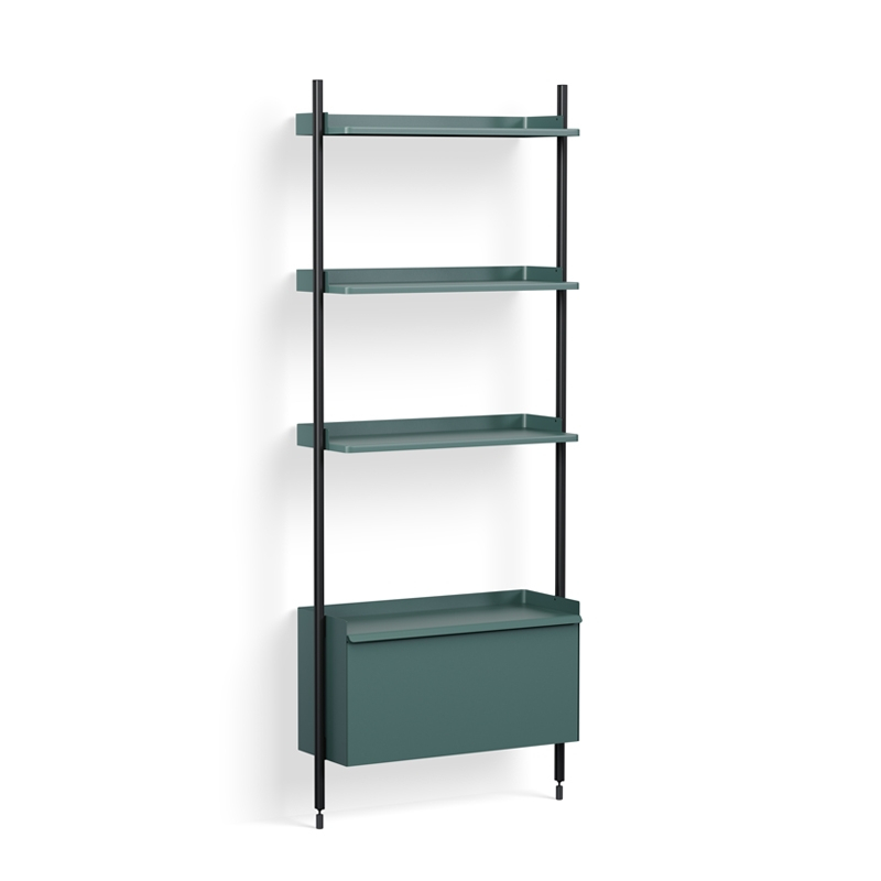 Designed by the famous designers Ronan & Erwan Bouroullec, Pier System is a multifunctional storage system, developed to adapt to modern living conditions. Supplied flat-packed and easy to assemble, reconfigure and recycle, Pier System features a simple, flexible construction that allows many types of objects to be stored and organised. Made from aluminium and steel using the minimum number of components necessary for a complete storage system, Pier System is available in a variety of colours and configurations, which can be combined together. The elements of the configurations can be moved according to need or desire, to integrate the functions you want. Published by Hay, the Pier storage system finds its place in every room of the house, be it the living room, bedroom, hallway or study. It is also suitable for contract spaces. The 131 configuration features a storage unit with drop-down door and three shelves.