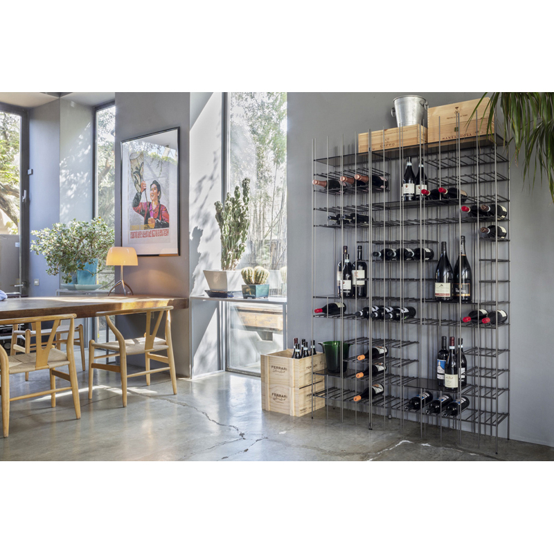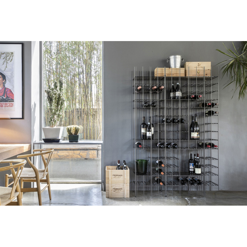 Thanks to its composition of metal rods and glass, the Metrica Wine bottle rack is a visually light piece of furniture that adds character to any space. Metrica Wine is available in two widths.