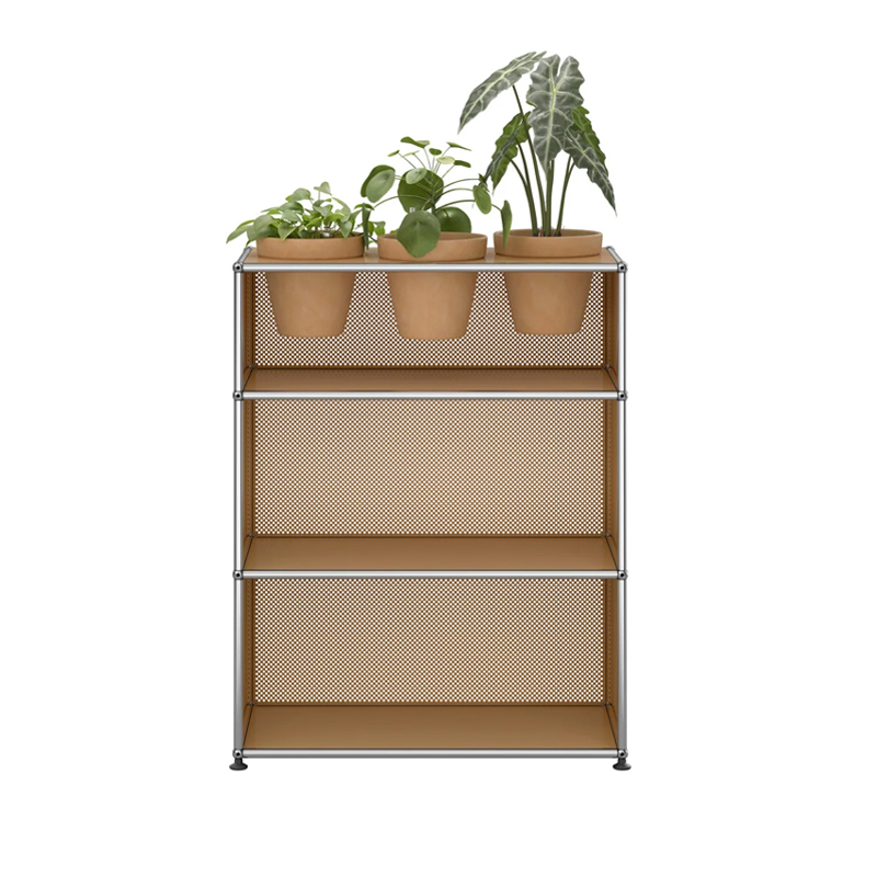 Created by architect Fritz Haller and visionary industrialist Paul Schärer, USM furniture has been made in Switzerland for over 50 years and is recognised the world over. The build quality of USM HALLER furniture and its timeless lines make it an essential design classic, equally at home in offices and the most beautiful interiors, whether classic or modern. Its modular design means that it can be upgraded over time as needs and desires change. The Haller M56 shelf has a chrome-plated steel structure assembled by connecting balls, clad in powder-coated steel panels and mounted on height-adjustable glides. The Haller M56 USM shelf comes with 3 pots* for your indoor plants, as well as a watering kit per pot. The kit guarantees regular watering for your plants. Plants and substrate are not supplied. * The finish of the pots is automatically coordinated with the colour of the panels: