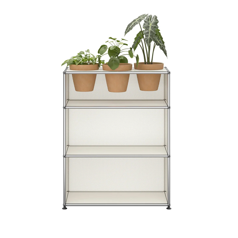 Created by architect Fritz Haller and visionary industrialist Paul Schärer, USM furniture has been made in Switzerland for over 50 years and is recognised the world over. The build quality of USM HALLER furniture and its timeless lines make it an essential design classic, equally at home in offices and the most beautiful interiors, whether classic or modern. Its modular design means that it can be upgraded over time as needs and desires change. The Haller M56 shelf has a chrome-plated steel structure assembled by connecting balls, clad in powder-coated steel panels and mounted on height-adjustable glides. The Haller M56 USM shelf comes with 3 pots* for your indoor plants, as well as a watering kit per pot. The kit guarantees regular watering for your plants. Plants and substrate are not supplied. * The finish of the pots is automatically coordinated with the colour of the panels: