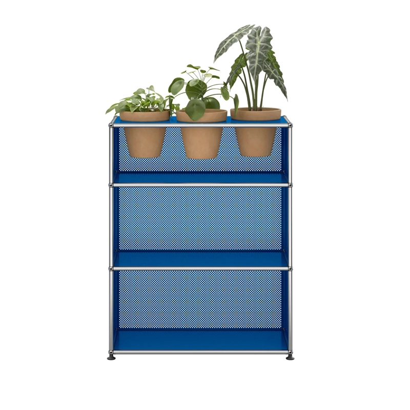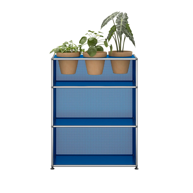 Created by architect Fritz Haller and visionary industrialist Paul Schärer, USM furniture has been made in Switzerland for over 50 years and is recognised the world over. The build quality of USM HALLER furniture and its timeless lines make it an essential design classic, equally at home in offices and the most beautiful interiors, whether classic or modern. Its modular design means that it can be upgraded over time as needs and desires change. The Haller M56 shelf has a chrome-plated steel structure assembled by connecting balls, clad in powder-coated steel panels and mounted on height-adjustable glides. The Haller M56 USM shelf comes with 3 pots* for your indoor plants, as well as a watering kit per pot. The kit guarantees regular watering for your plants. Plants and substrate are not supplied. * The finish of the pots is automatically coordinated with the colour of the panels: