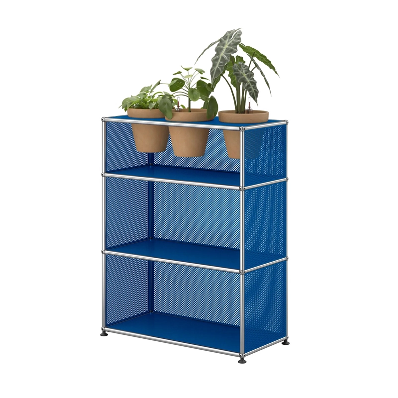 Created by architect Fritz Haller and visionary industrialist Paul Schärer, USM furniture has been made in Switzerland for over 50 years and is recognised the world over. The build quality of USM HALLER furniture and its timeless lines make it an essential design classic, equally at home in offices and the most beautiful interiors, whether classic or modern. Its modular design means that it can be upgraded over time as needs and desires change. The Haller M56 shelf has a chrome-plated steel structure assembled by connecting balls, clad in powder-coated steel panels and mounted on height-adjustable glides. The Haller M56 USM shelf comes with 3 pots* for your indoor plants, as well as a watering kit per pot. The kit guarantees regular watering for your plants. Plants and substrate are not supplied. * The finish of the pots is automatically coordinated with the colour of the panels:
