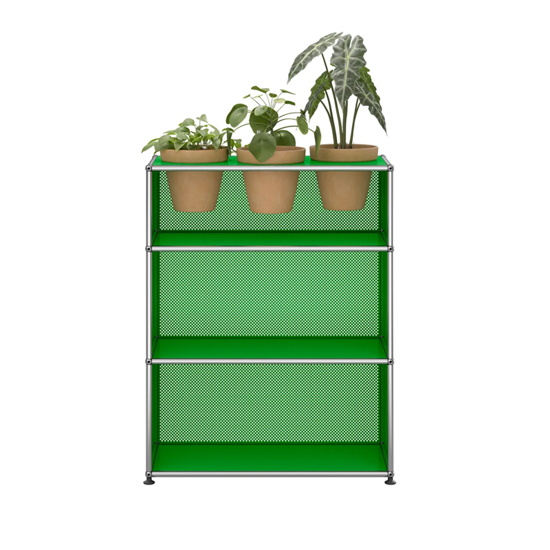 Created by architect Fritz Haller and visionary industrialist Paul Schärer, USM furniture has been made in Switzerland for over 50 years and is recognised the world over. The build quality of USM HALLER furniture and its timeless lines make it an essential design classic, equally at home in offices and the most beautiful interiors, whether classic or modern. Its modular design means that it can be upgraded over time as needs and desires change. The Haller M56 shelf has a chrome-plated steel structure assembled by connecting balls, clad in powder-coated steel panels and mounted on height-adjustable glides. The Haller M56 USM shelf comes with 3 pots* for your indoor plants, as well as a watering kit per pot. The kit guarantees regular watering for your plants. Plants and substrate are not supplied. * The finish of the pots is automatically coordinated with the colour of the panels: