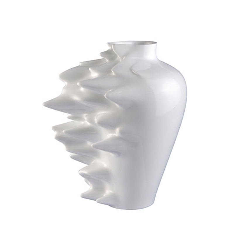 Designed by French designer Cédric Ragot for Rosenthal, Fast vases represent the archetype of a Ming vase, their digital acceleration frozen in time. Winners of the 2007 Chicago Athenaeum Good Design Awards (one of the most famous awards in the world), these vases are a perfect representation of art in motion. Their creator has combined tradition and new technologies to create these white porcelain vases anchored in astonishing design. Fast vases are available in two sizes. The combination of the softness of the material and the dynamics of the shape gives these vases a stunning and captivating sculptural appearance, with or without flowers.