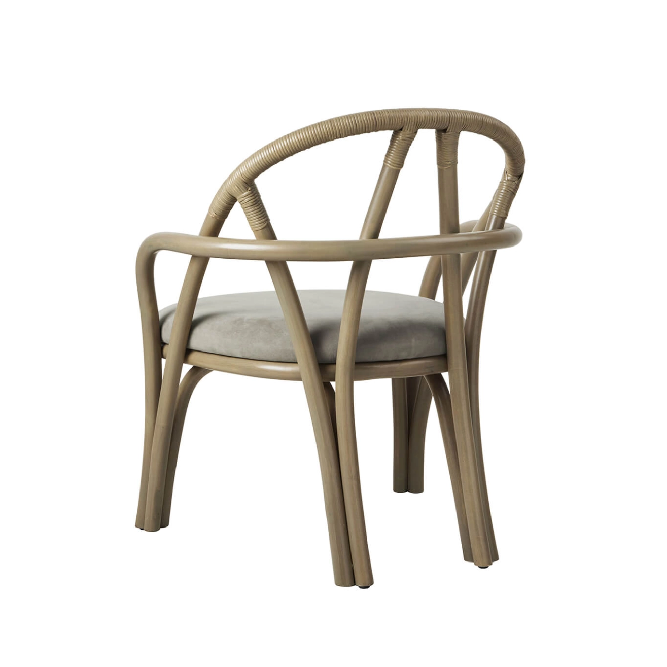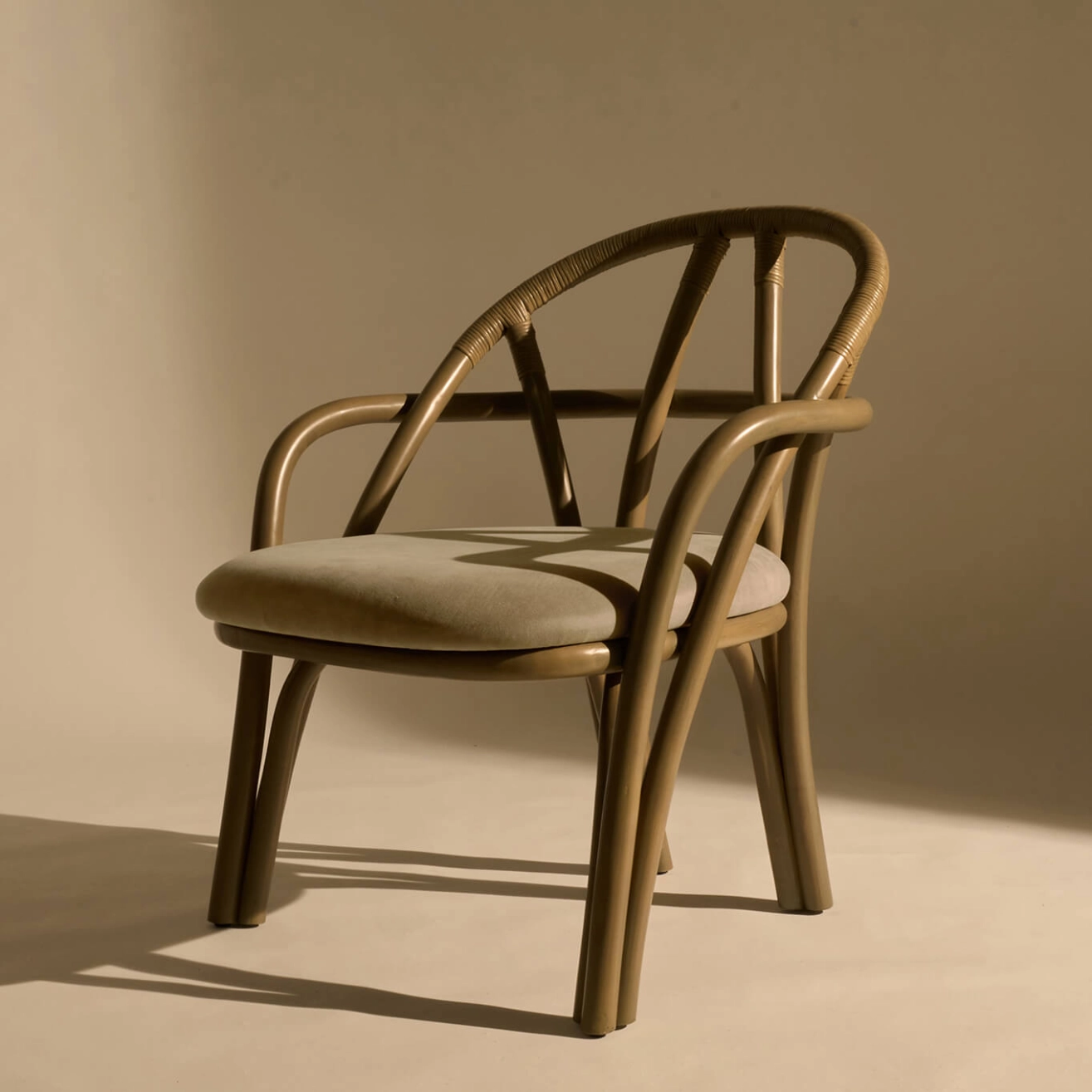 Designed for GUBI by Michele De Lucchi’s AMDL Circle, Bistra is a sculptural furniture collection that distillates the classic bistro chair to its essential shape, finding elegance and timelessness in its main structural elements. This formal reduction work highlights the strength of minimal design, where each line, each curve, finds its place with precision and poetry. Composed of a dining chair, a chaise longue and a three-legged stool, the collection is rooted in its main material: steam-curved rattan. This natural material, flexible and resistant, is worked according to traditional artisanal techniques that allow to reveal all the expressive richness. It gives the whole a warm and organic presence. Its visual language is inspired by the idea of organic growth, expressed in the arborescent contours of the legs, arms and backrest, and echoed in the custom-designed padding, which features a botanical pattern inspired by a fresco by Leonardo da Vinci. The aesthetics of Bistra thus evoke the plant world, as if each piece took root in space. The textile pattern adds an artistic and narrative dimension, reinforcing the link between nature, art and design. Available in three frame colors and several fabrics, Bistra is a versatile seating collection that blends artisanal traditions of furniture making with exquisite contemporary craftsmanship. It adapts elegantly to a variety of environments, from residential interiors to public spaces, and embodies a vision of design where craftsmanship and contemporary creativity dialogue with subtlety.