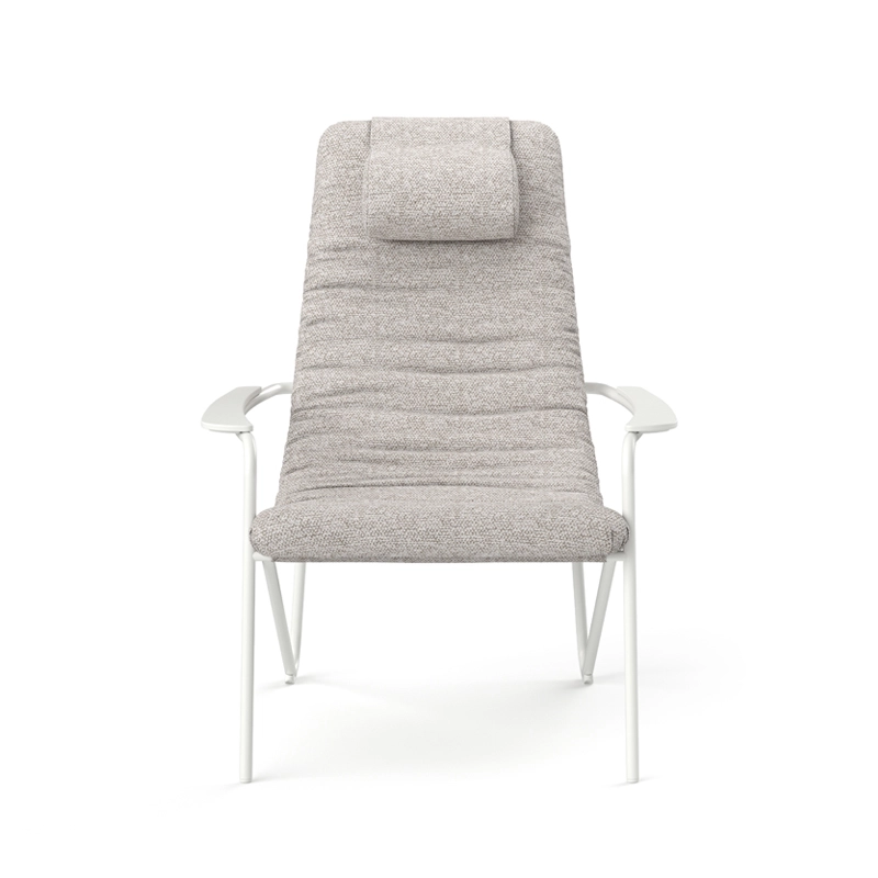 Designed to make the most of time outdoors, Calma is a lightweight, relaxed outdoor armchair. An ingenious mix between a hammock and an upholstered armchair, Calma is characterised by its comfort. The seat consists of a long, suspended band that adapts naturally to each individual to create a truly relaxed position. The length of the seat allows you to rest your head on a headrest that can be folded back to suit your preferred position. Published by Stua, the Calma armchair is made in Spain using European materials. Thanks to its design, materials and comfort, the Calma Stua armchair can be used both indoors and outdoors. A footrest can be added for even greater comfort. The covers are machine washable, taking care to protect the Velcro so as not to damage the fabric.