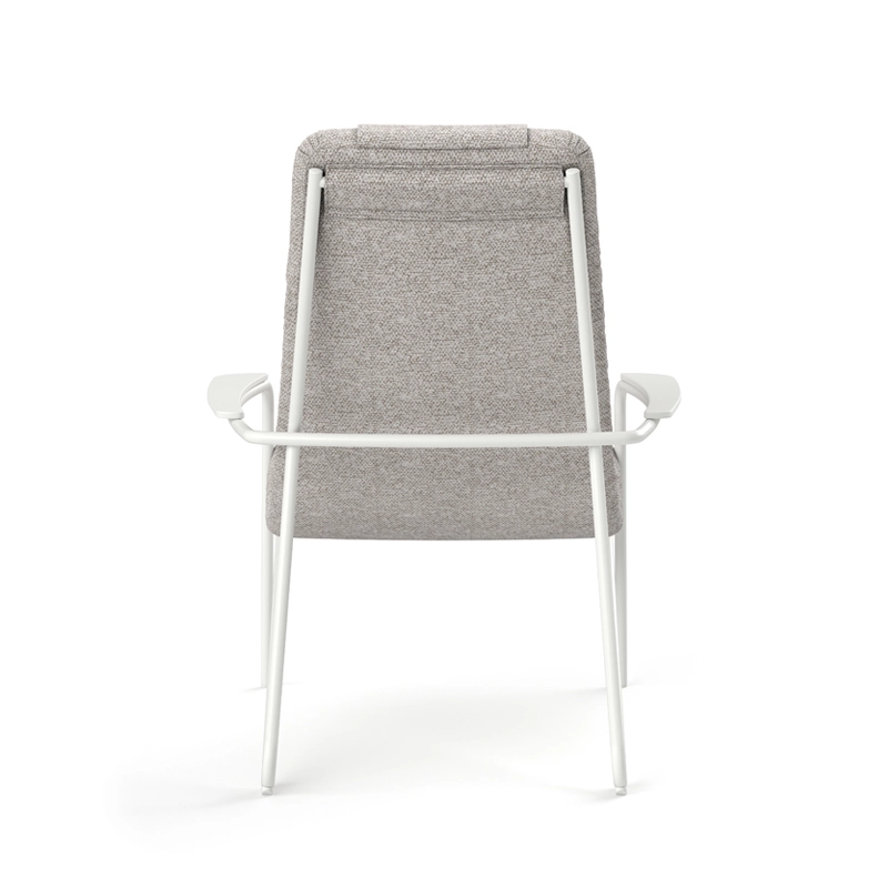 structure acier inoxydable finition époxy, accoudoirs hpl outdoor, assise suspendue mousse et tissu outdoor