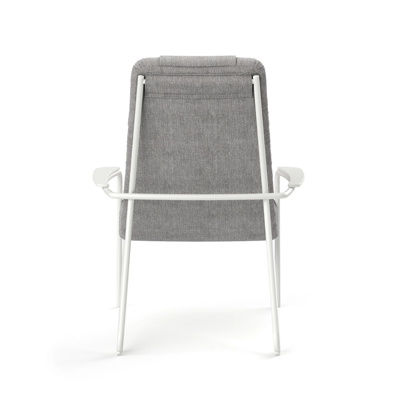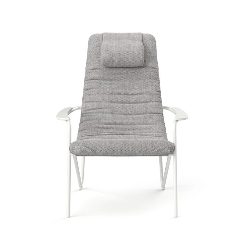 Designed to make the most of time outdoors, Calma is a lightweight, relaxed outdoor armchair. An ingenious mix between a hammock and an upholstered armchair, Calma is characterised by its comfort. The seat consists of a long, suspended band that adapts naturally to each individual to create a truly relaxed position. The length of the seat allows you to rest your head on a headrest that can be folded back to suit your preferred position. Published by Stua, the Calma armchair is made in Spain using European materials. Thanks to its design, materials and comfort, the Calma Stua armchair can be used both indoors and outdoors. A footrest can be added for even greater comfort. The covers are machine washable, taking care to protect the Velcro so as not to damage the fabric.