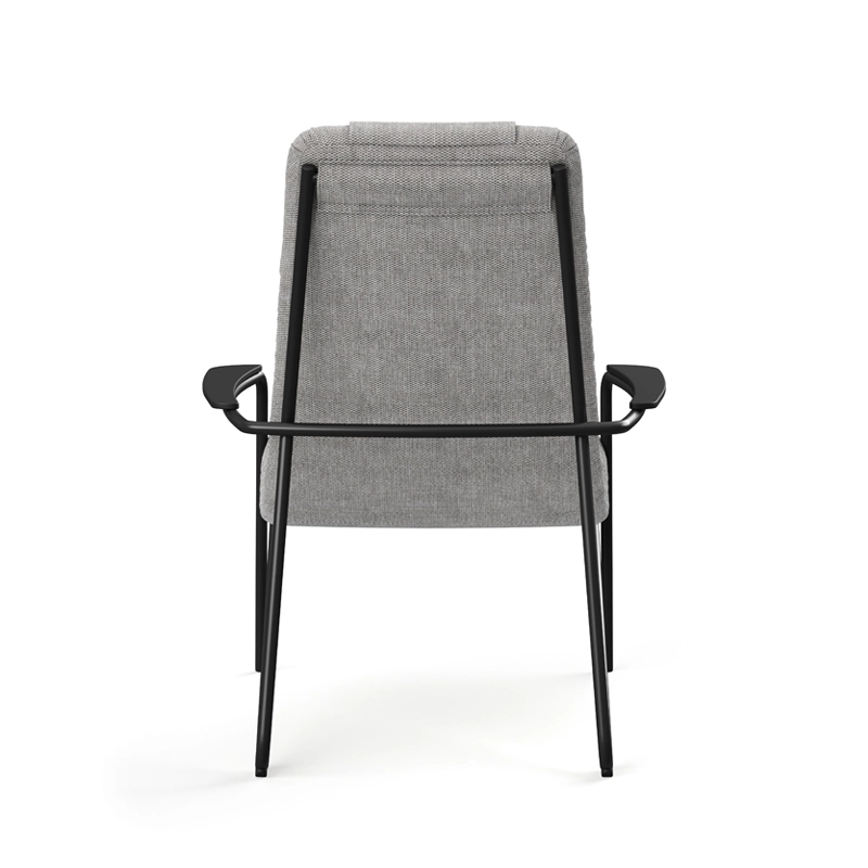 structure acier inoxydable finition époxy, accoudoirs hpl outdoor, assise suspendue mousse et tissu outdoor