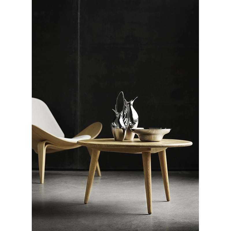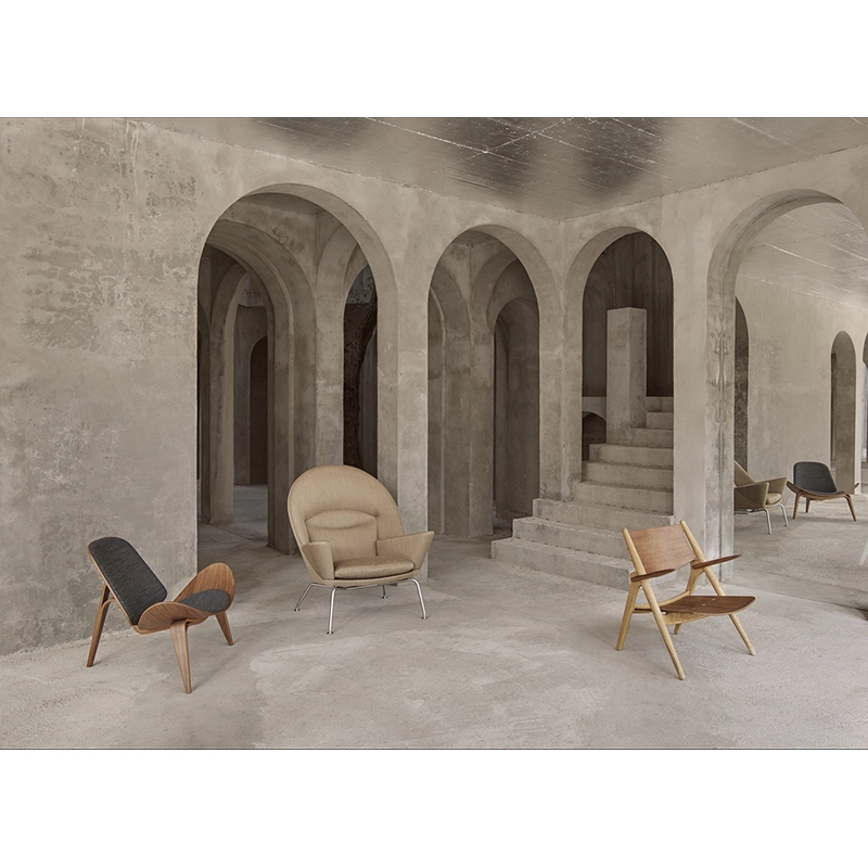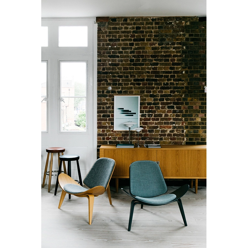 When Hans J. Wegner unveiled the design of the CH07 Shell Chair in 1963, many critics loved its avant-garde look, but the general public was reluctant to accept its distinctive expression. The mixed reviews of the 1960s and the less developed production techniques of the time resulted in a very limited output. When Carl Hansen & Søn reintroduced the Shell armchair in 1998, it won widespread public admiration almost immediately due to the interest of a new generation. The floating lightness of the design of the chair CH07 is achieved thanks to its wing-shaped seat and curved backrest supported by a frame with three arched legs. The chair's iconic seat and backrest are created from moulded upholstered veneer, cradling the user in generous comfort. The legs of the chair CH07 are made of several layers of veneer, and the two front legs are made of a single element, resulting in a unique and stable shape. The CH07 armchair is a clear manifestation of Wegner's belief that an armchair should always be comfortable and beautiful from every angle.