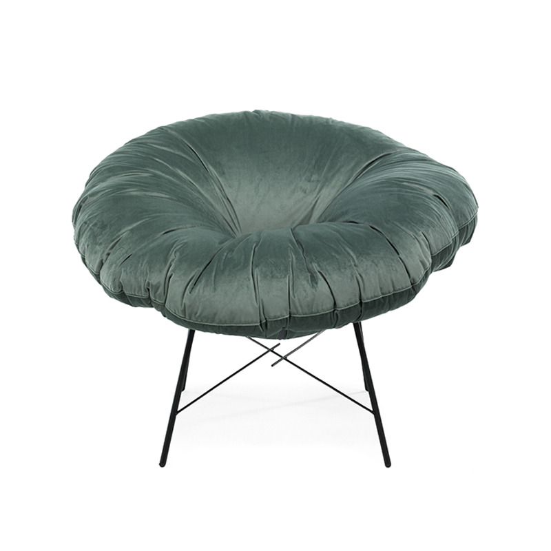 Closer is an armchair with a matt black painted iron base and a removable feather cushion. This particularly welcoming designer armchair plays on the contrast between the slimness of the structure and the generosity of the cushion, which is particularly welcoming and enveloping. Designed by Dainelli Studio for the Mogg brand, Closer offers maximum comfort with minimum bulk.