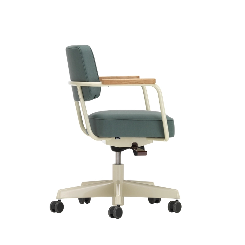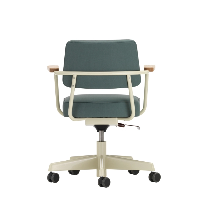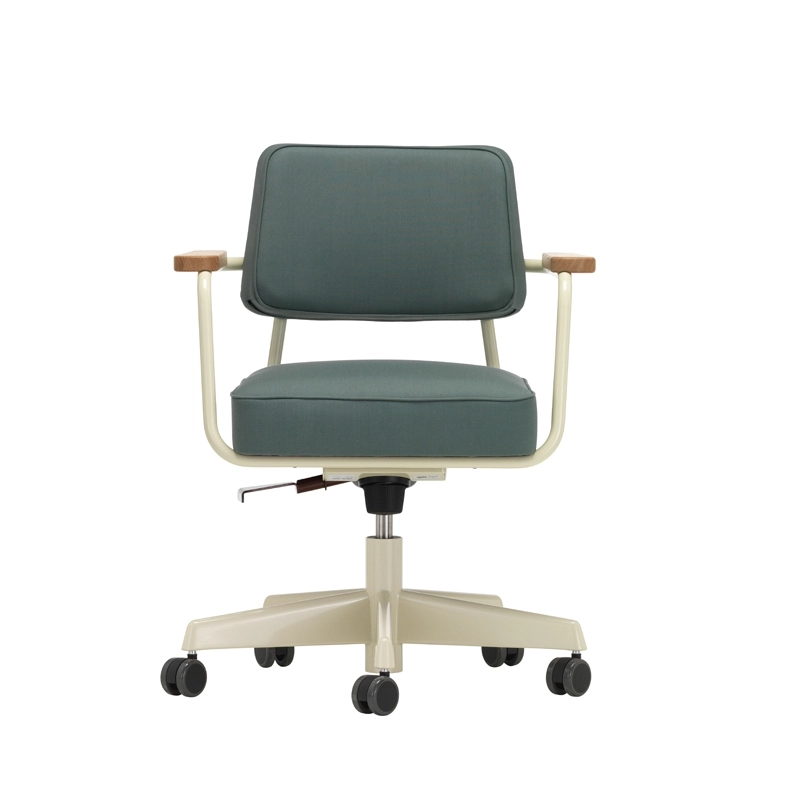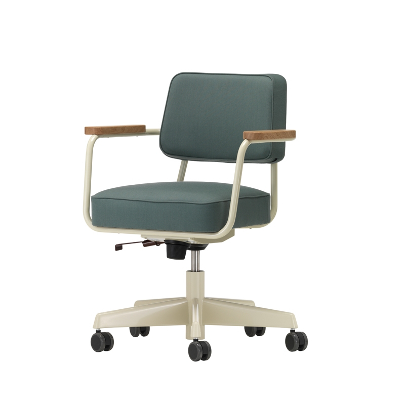 SWIVEL STEERING CHAIR Twill grey green 17/ Prouvé Blanc Colombe