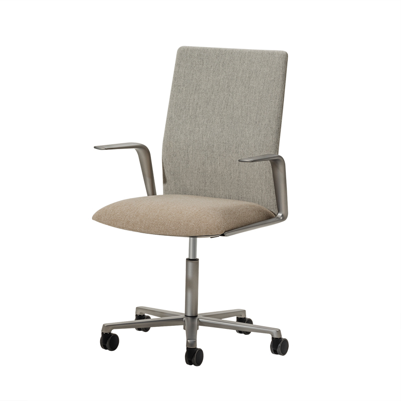 Kinesit Met is the sophisticated version of the Kinesit office chair. Edited by Arper, the Kinesit Met office chair is available with armrests in metallic finishes, textures and colours in rich, nuanced tones. Inspired by contemporary trends and changes in our working habits and spaces, Kinesit Met is designed to adapt to all these new places and ways of working - more flexible, more pleasant, from anywhere. With its lightweight, minimalist design, Kinesit Met features a mechanism discreetly integrated under the seat of the chair. Invisible, adjustable lumbar support is concealed beneath the slim backrest structure for added flexibility and comfort. Kinesit Met is also available with two backrest heights - one low and one medium - customisable in a range of ombré and textured fabrics.