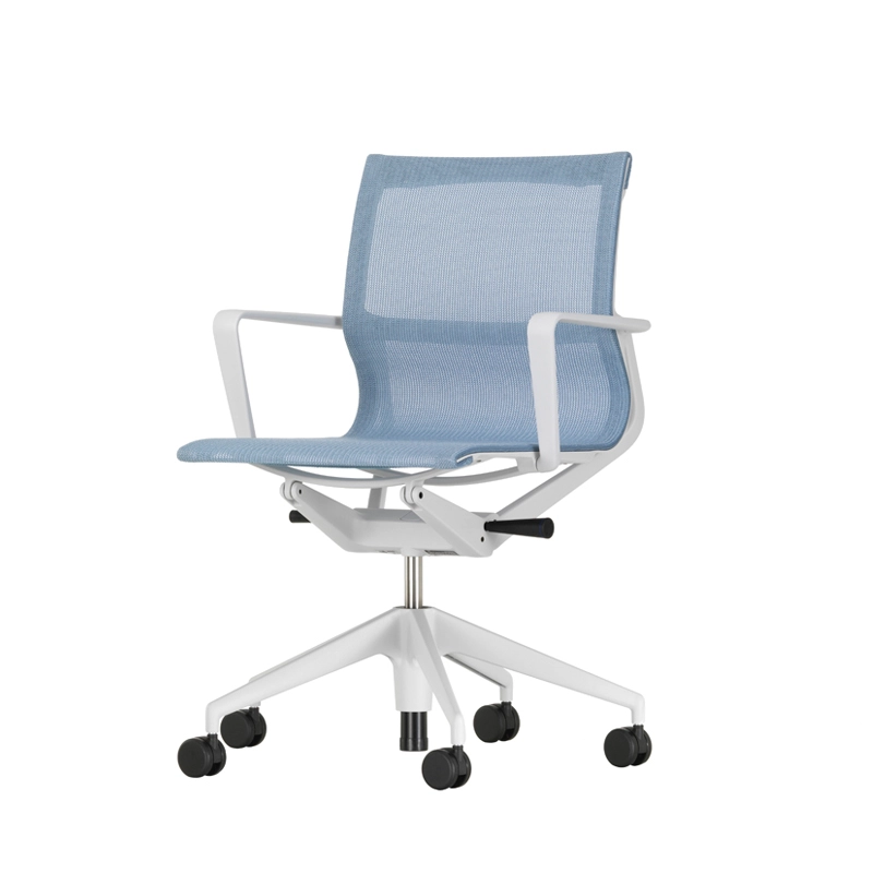 Designed by Alberto Meda for Vitra, the Physix chair is an understated and lightweight office chair with a swivel and height-adjustable base. Its design offers exceptional comfort: a high-performance textile panel is stretched between two adjustable side bars. Its understated appearance combined with its technical performance make Physix a perfect addition to any office environment.