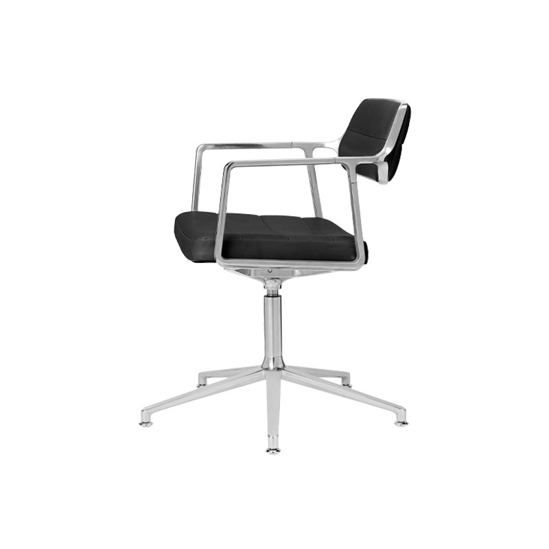 SWIVEL CHAIR with glides Black leather / Polished aluminium
