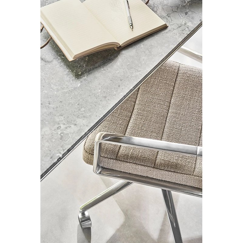 SWIVEL CHAIR with glides Dark sand fabric / Polished aluminium