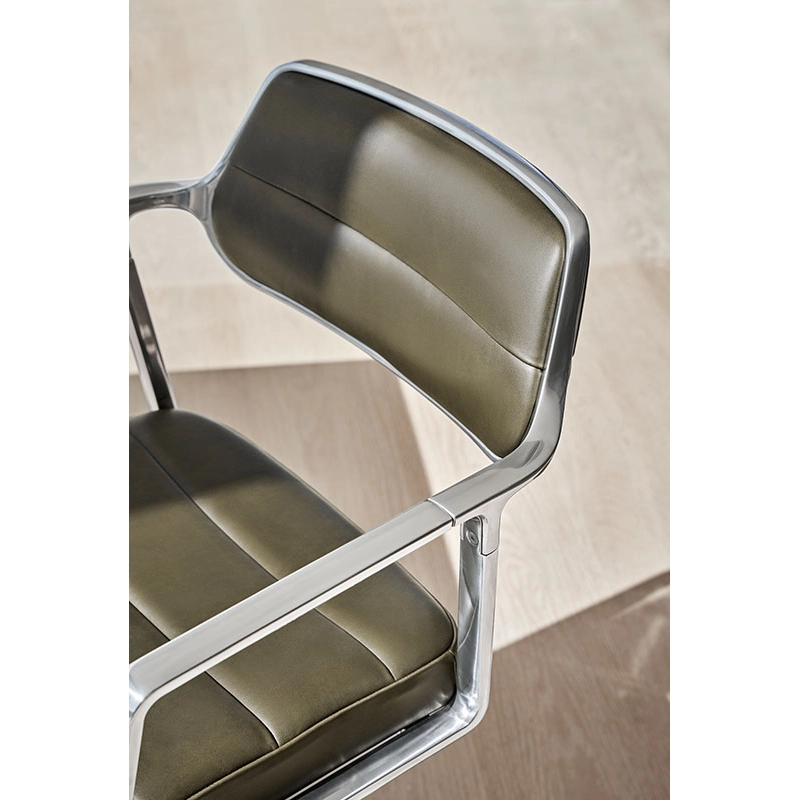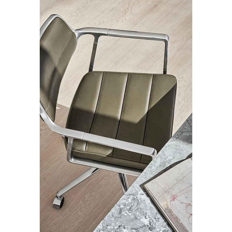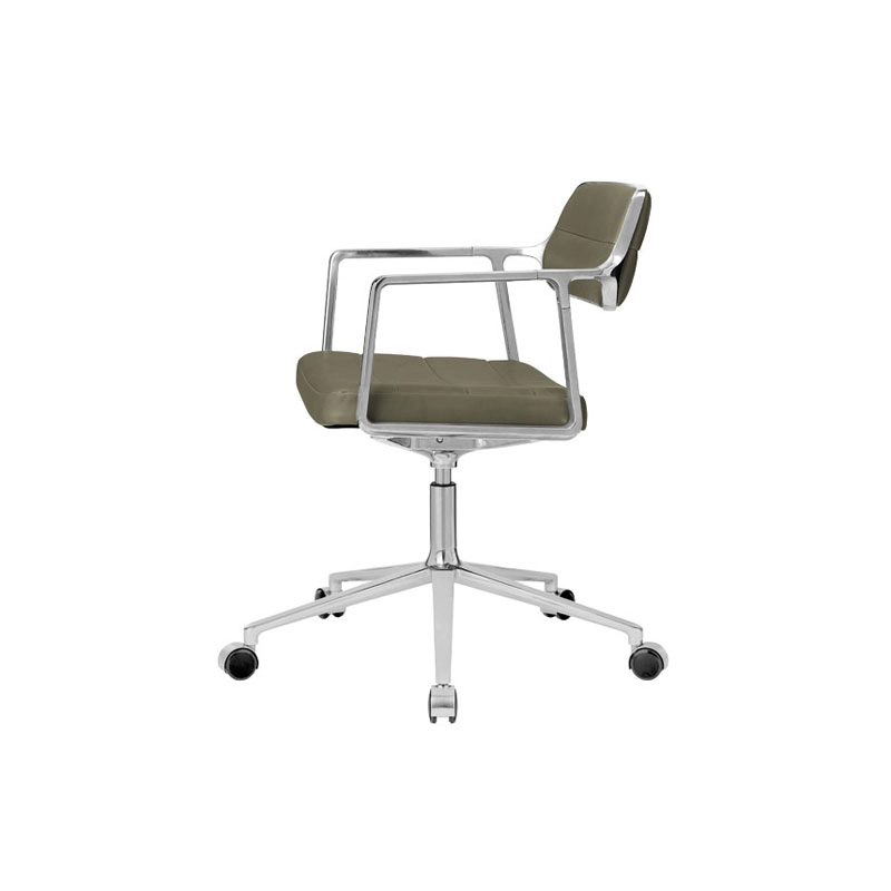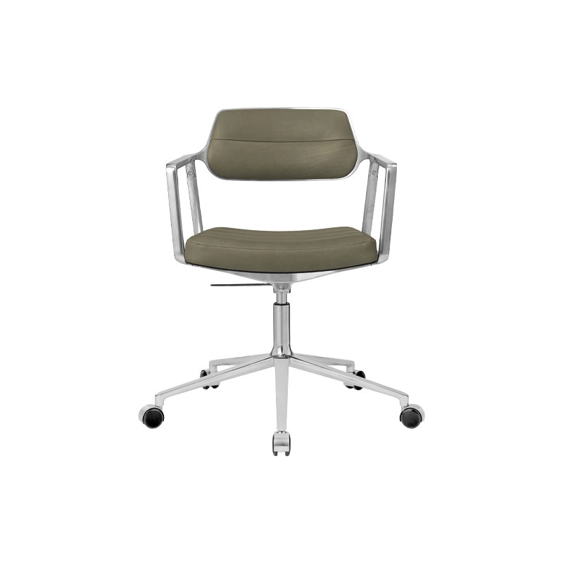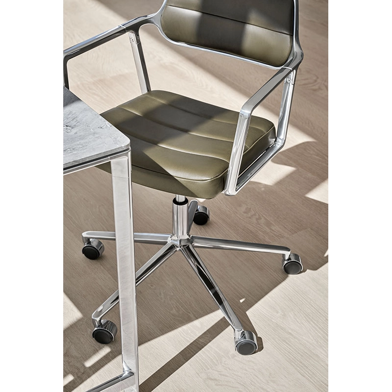 SWIVEL CHAIR with castors Bosco green leather / Polished aluminium