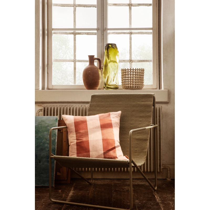 The Desert collection from Ferm Living combines modernist design with durable functionality for an armchair perfectly suited to both indoor and outdoor use. Graceful and sleek, the Desert armchair features a tubular steel frame and a removable seat in hand-woven fabric. Using specialist technology, Desert textiles are made entirely from recycled plastic bottles turned into yarn. This technique produces an incredibly resistant and durable design, while reusing waste materials. Each seat of the Desert armchair corresponds to the equivalent of 53 plastic bottles. Not only are these textiles practical, easily washable and suitable for outdoor use, they are also pleasant to the touch, contrary to what you might think of a material made from plastic. Lightweight and elegant, the Desert Ferm Living armchair lives with the seasons, moving easily from indoors to outdoors.