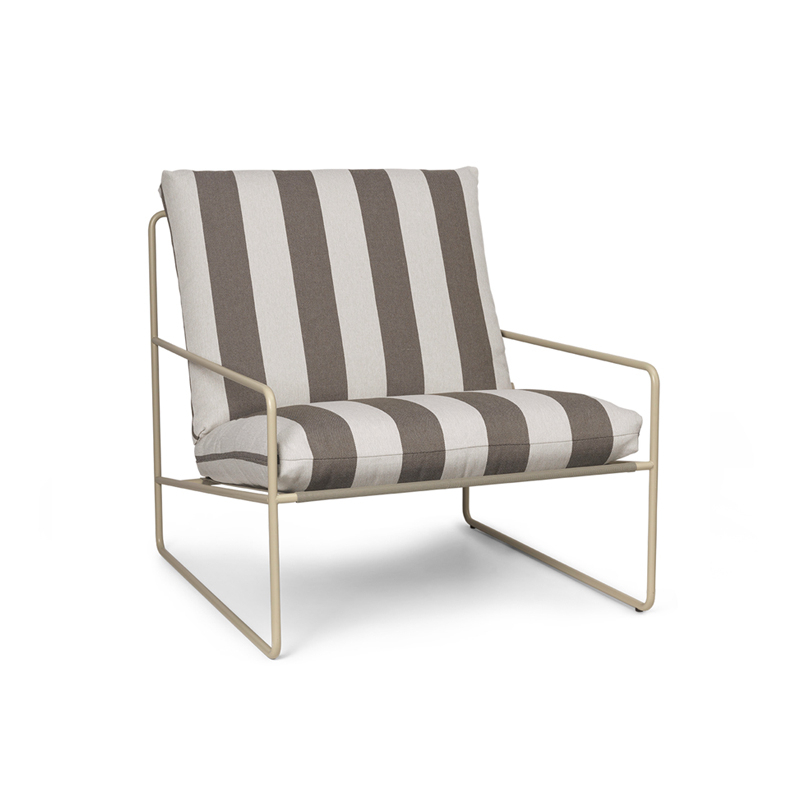 With Desert Stripe, Ferm Living offers a collection of upholstered seating, perfect for creating a space for conviviality and relaxation in the garden. The Desert Stripe sofas and armchairs have been designed for the outdoors with materials and fabrics that withstand the elements and the sun. Comfortable, functional and aesthetically pleasing, the Desert Stripe collection adapts to all outdoor spaces to make the most of fine weather. It is also ideal for indoor use.