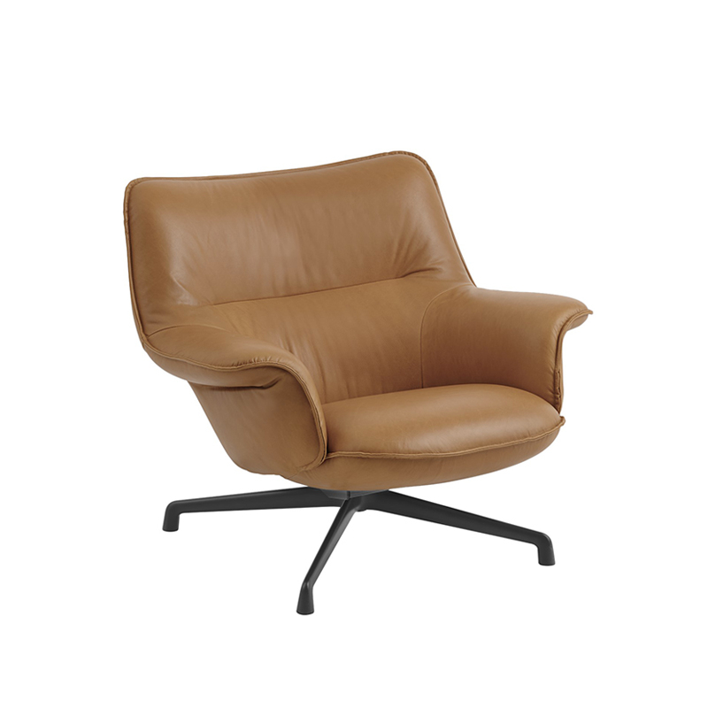 Easy chair DOZE LOUNGE LOW swivel base Cognac/black leather MUUTO