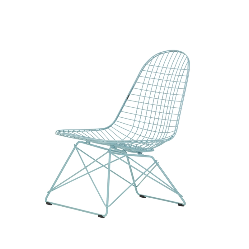Designed by Charles and Ray Eames from welded steel wire, the Wire Chair combines transparent lightness with technological sophistication. Edited by Vitra, the Wire Chair is now available with a new lounge height base: the Eames Wire Chair LKR (Lounge Height K-Shell R-Wire Base).  The LKR armchairs have an epoxy or chrome finish. Models with a powder-coated finish are suitable for indoor and outdoor use. Perfect for the garden or living room, The LKR armchair is available in the same finishes as the DKR chair, including the spring colours offered by Vitra, based on the palette designed by Charles & Ray Eames: Lemon, Sky Blue, Dark Green and Eames Seafoam Green.