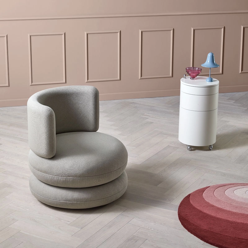 Designed in 1963, the Easy Chair stands out as one of the most visually distinctive of Verner Panton's designs. With its soft, round shapes, three-layer design and high seating comfort, the Easy Chair creates a strong impact in any environment, domestic or professional. The armchair has a generous seat and a wide, wrap-around backrest, which doubles as an armrest depending on the position adopted. Published by Verpan, the Easy Chair is available in different fabrics and colours to suit your space.