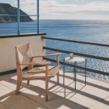 Gubi is now reissuing this armchair in an Outdoor version. F-Chair combines a teak frame, a naturally durable and hard-wearing material, with a waterproof braided rope, made from polyethylene, and worked to capture the look of natural rope. The naturally oiled teak allows the chair to remain outdoors even in the harshest climates, without the need for additional treatment. Over time, it will develop a beautiful patina.