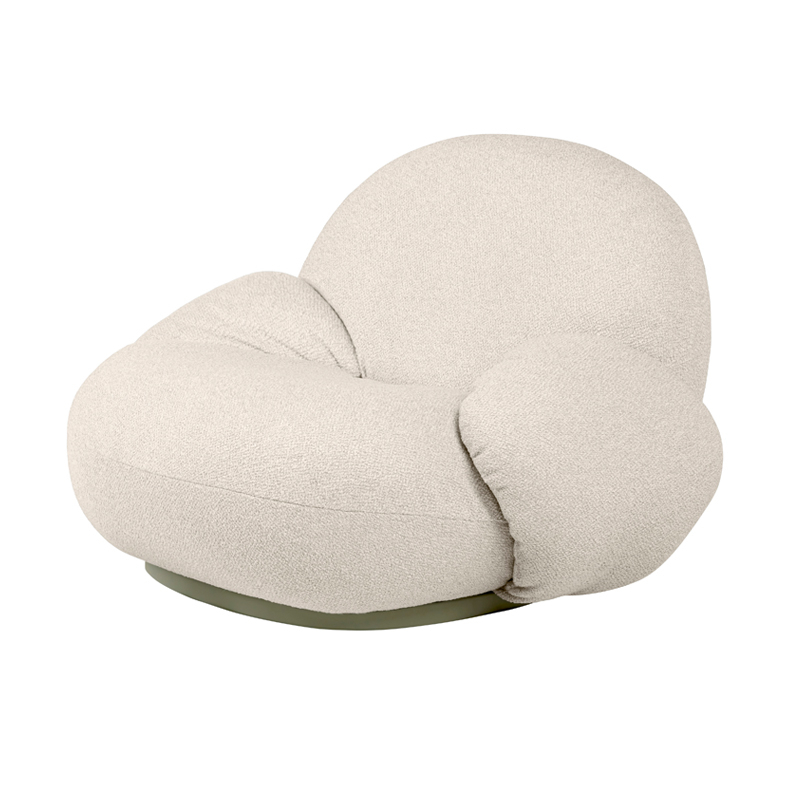 Pierre Paulin's famous avant-garde collection pushes the boundaries even further and leaves the house. The sculptural softness of the collection Pacha, inspired by clouds, is distinguished by its original shape and high level of comfort for optimal relaxation. All these qualities are now available in an outdoor version. Pierre Paulin's first sketches for the Pacha collection were very simple drawings that looked like clouds. These forms became the basis of the Pacha armchair, defining a new spirit of the time. When it was launched in 1975, the Pacha armchair introduced a new way of relaxing, closer to the ground. Designed to last, Pacha Outdoor features an intermediate membrane, developed specially by Gubi for the collection. It is both waterproof and breathable, ensuring quick drying after exposure to the rain, while maintaining the comfort of the original icon. The swivel base is made from moisture-resistant plywood and includes a stainless steel rotation mechanism.  The Pacha Gubi armchair is also available in a fixed version. Edited by Gubi, the Pacha Outdoor collection includes a swivel armchair with or without armrests, a pouffe and sofas in various sizes. All these models can be combined to create an outdoor relaxation area to suit your space.