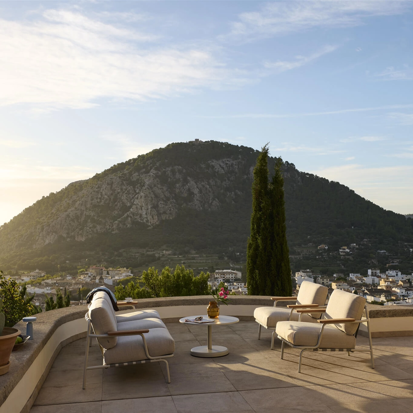 The Settle armchair designed by Anderssen & Voll for Muuto is part of the Settle collection of which the Settle sofas are a part. It has an aerated steel frame and mahogany wood armrests, guaranteeing comfort and sturdiness. The galvanised, primed and powder-coated structure resists corrosion for long-lasting use. The Settle armchair also has cushions whose fabric dries quickly in showers, so it will last all year round when the protective covers are used. The Settle armchair by Muuto comes in a range of colours to suit many different decors and spaces. So it's an ideal choice for a stylish, modern exterior.