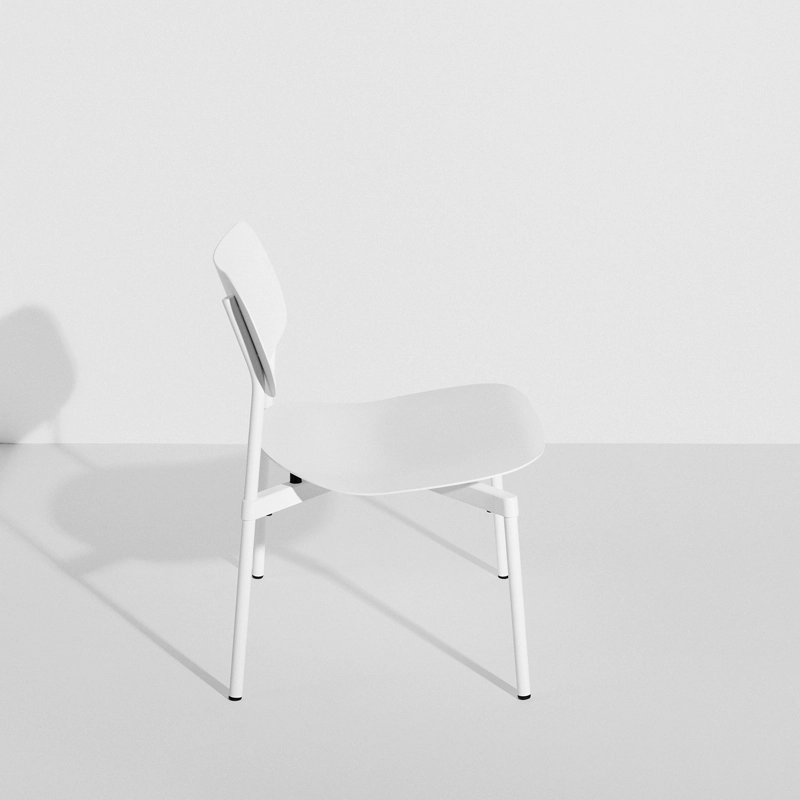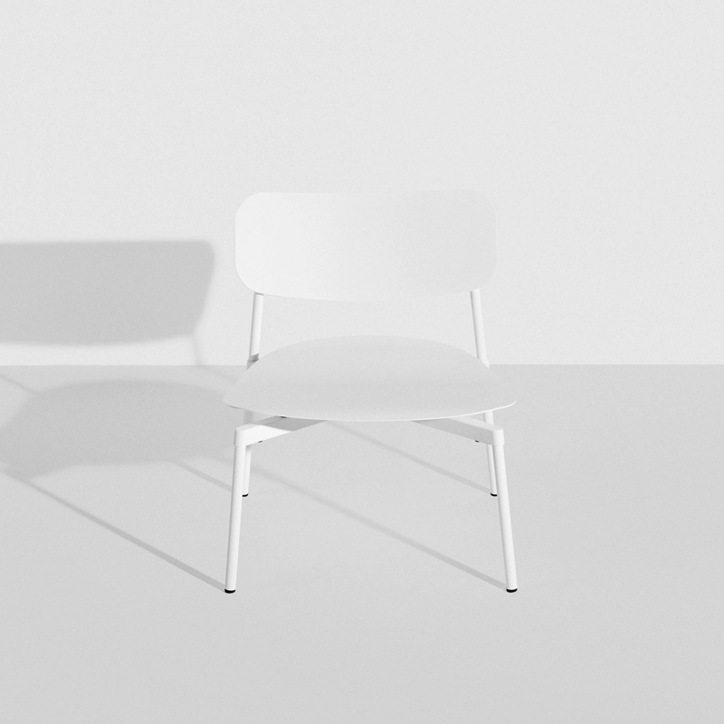 Published by Petite Friture, Fromme is a collection of metal furniture designed for the outdoors, distinguished by its clean lines and unique character. The fauteuil Fromme is an ergonomic lounge chair, which takes on the technical properties of a bicycle saddle thanks to the shock absorbers placed under the seat. Another inspiration drawn from racing bikes: its pure, streamlined lines, common to all the pieces in the Fromme collection. Assembled from die-cast and profiled parts, and extruded tubes specially designed by Tom Chung for this collection, the outdoor lounge chair has a light, solid structure. Petite Friture takes a sustainable, environmentally-friendly approach to its products, so the entire collection is made from recyclable aluminium. The Fromme collection offers a number of functional advantages: comfort thanks to the slightly curved seat and shock absorbers under the seat, indoor and outdoor use thanks to the choice of aluminium construction and UV-treated matt grained paint. The fromme outdoor lounge chair is stackable by 4, water-resistant and certified for intensive outdoor use.