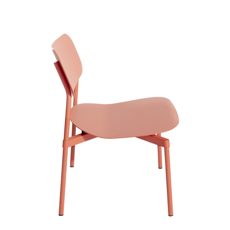 Published by Petite Friture, Fromme is a collection of metal furniture designed for the outdoors, distinguished by its clean lines and unique character. The fauteuil Fromme is an ergonomic lounge chair, which takes on the technical properties of a bicycle saddle thanks to the shock absorbers placed under the seat. Another inspiration drawn from racing bikes: its pure, streamlined lines, common to all the pieces in the Fromme collection. Assembled from die-cast and profiled parts, and extruded tubes specially designed by Tom Chung for this collection, the outdoor lounge chair has a light, solid structure. Petite Friture takes a sustainable, environmentally-friendly approach to its products, so the entire collection is made from recyclable aluminium. The Fromme collection offers a number of functional advantages: comfort thanks to the slightly curved seat and shock absorbers under the seat, indoor and outdoor use thanks to the choice of aluminium construction and UV-treated matt grained paint. The fromme outdoor lounge chair is stackable by 4, water-resistant and certified for intensive outdoor use.